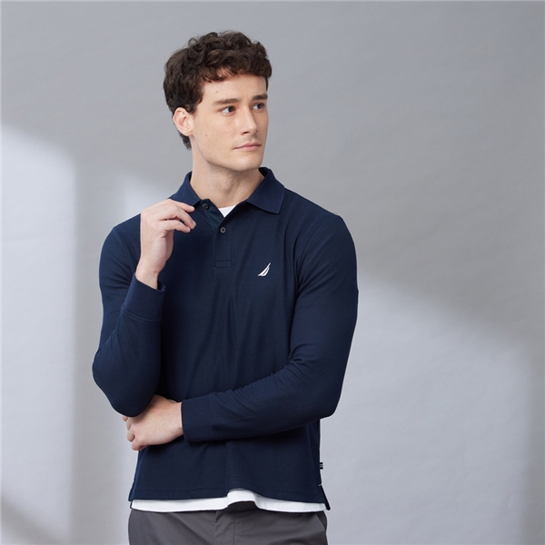 Nautica 官方旗艦 男裝 COMPETITION高領跳色長袖POLO衫-黑色