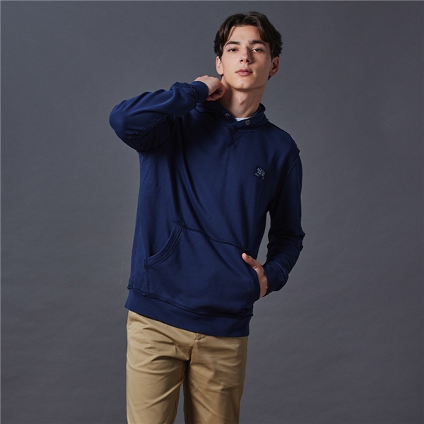 男裝 簡約柔棉運動長袖連帽T恤-藍