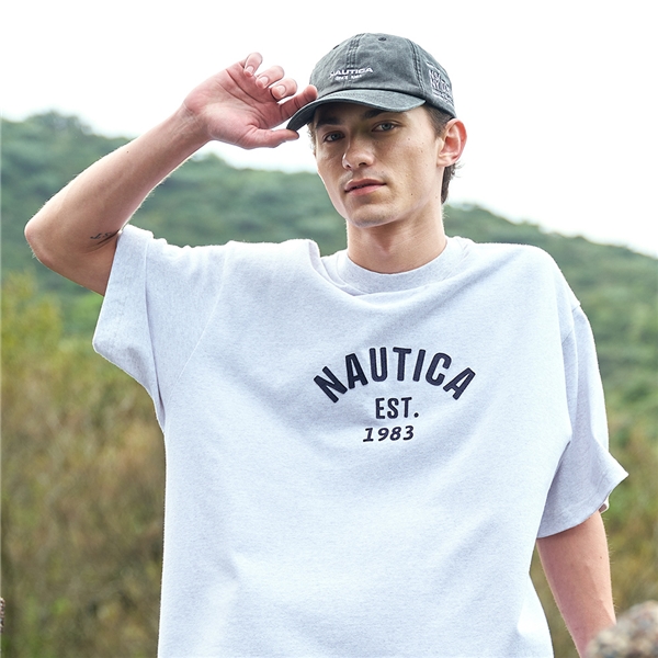 童趣感弧形LOGO厚磅純棉短袖T恤-灰色