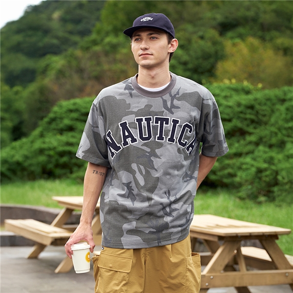 滿版迷彩經典弧形LOGO純棉短袖T恤-灰色