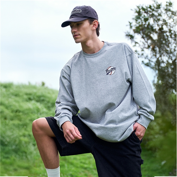 (REEBOK聯名款)美式復古棒球刺繡純棉長袖T恤-灰色