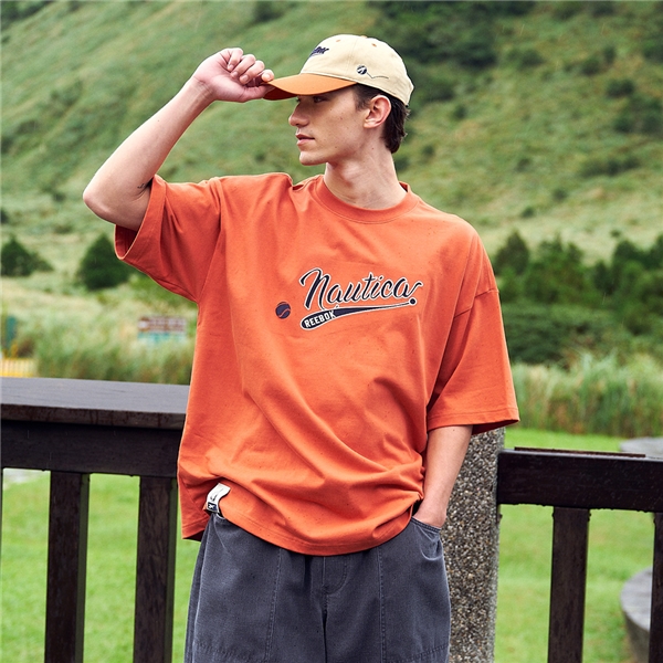 (REEBOK聯名款)美式復古棒球刺繡純棉短袖T恤-橘色