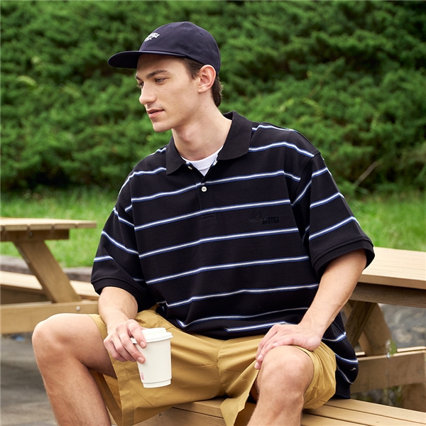 男裝 條紋短袖POLO衫-黑色