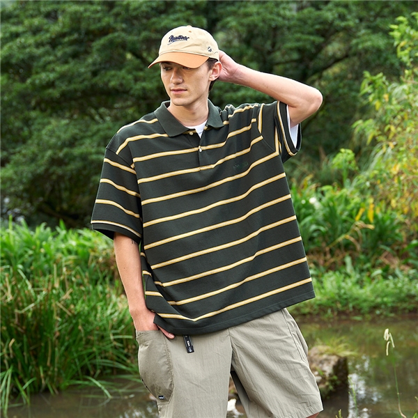 (REEBOK聯名款) 男裝 美式復古刺繡棒球長袖POLO衫-綠色