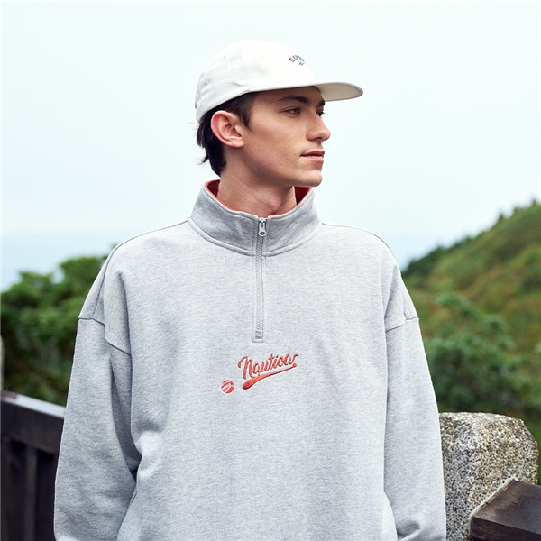 (REEBOK聯名款) 男裝 美式復古刺繡棒球長袖POLO衫-灰色