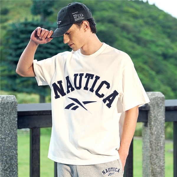 (Reebok聯名款)經典大學風LOGO純棉短袖T恤-白色