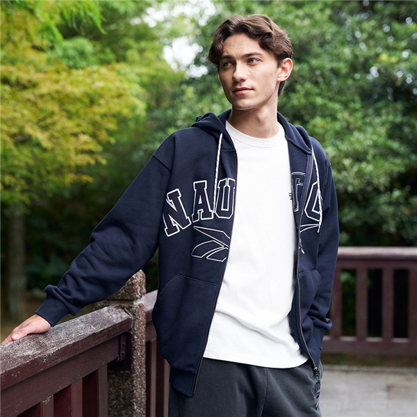 (Reebok聯名款)街頭風品牌LOGO連帽外套-深藍色
