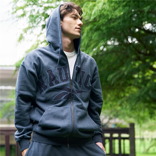 (Reebok聯名款)街頭風品牌LOGO連帽外套-深藍色