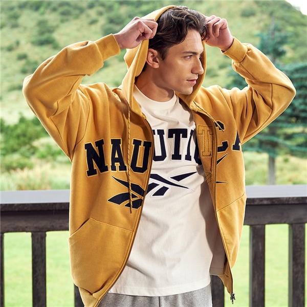 (Reebok聯名款)街頭風品牌LOGO連帽外套-黃色