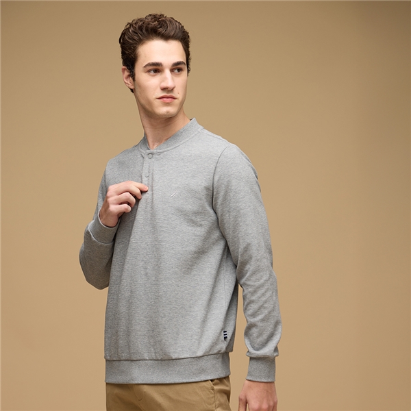 亨利領休閒運動長袖T恤-灰色