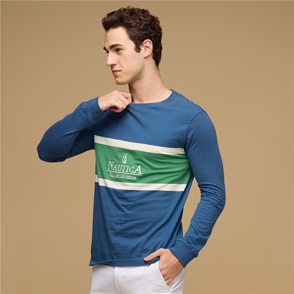 品牌LOGO印花休閒長袖T恤-橄欖綠色