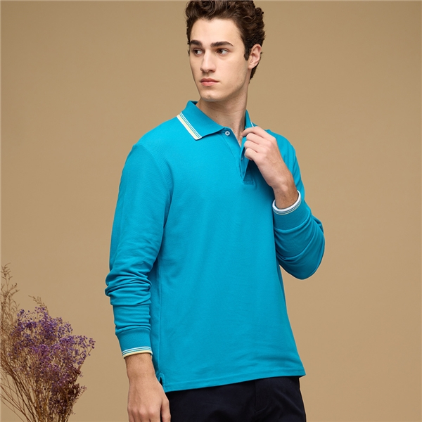 男裝 鯊魚刺繡長袖POLO衫-淺藍色
