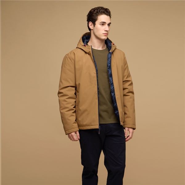 男裝 防潑水可調節式連帽外套-卡其色