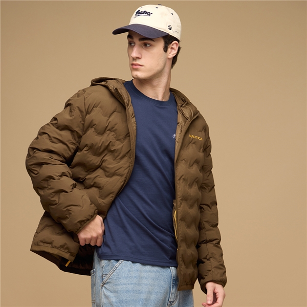 男裝 波浪絎縫防潑水連帽外套-棕色