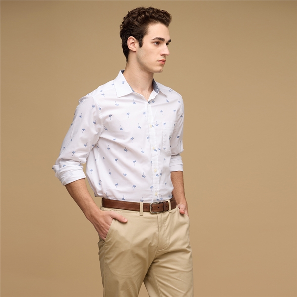 2WAY可拆袖設計防潑水長袖襯衫-軍綠色