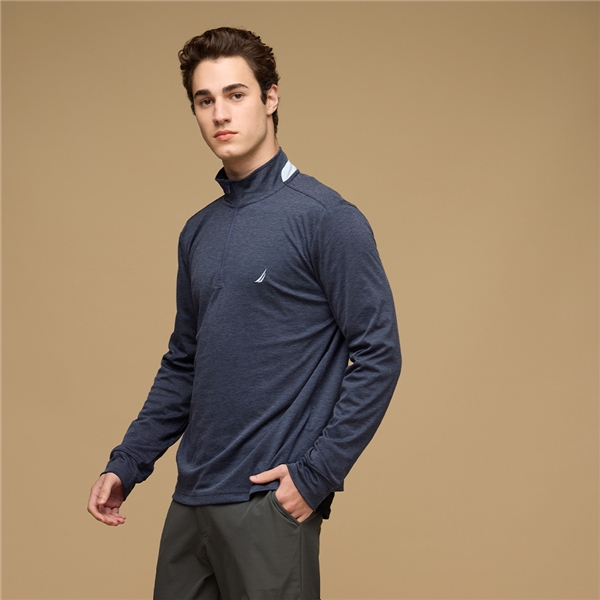 Nautica 官方旗艦 男裝 COMPETITION高領跳色長袖POLO衫-黑色