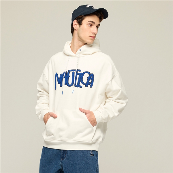 (蔡徐坤同款)潮流塗鴉品牌LOGO連帽大學T-白色