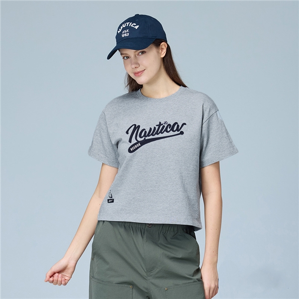 (REEBOK聯名款) 女裝 美式復古棒球刺繡純棉短袖T恤-灰色
