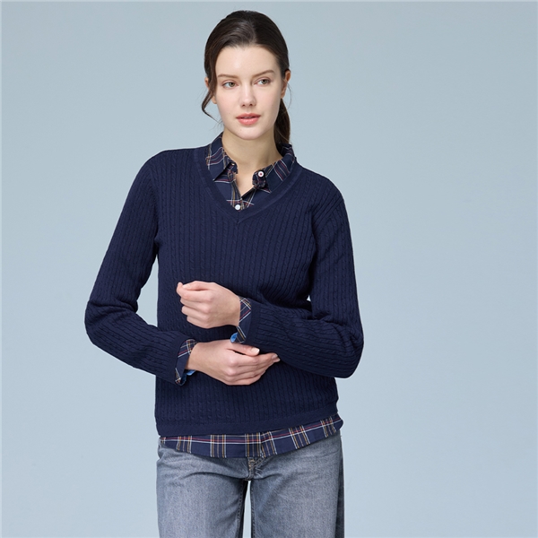 女裝 溫暖休閒條紋長袖針織上衣-咖啡色