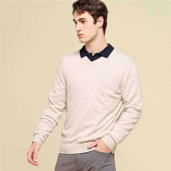 男裝 經典V領線衫-白色
