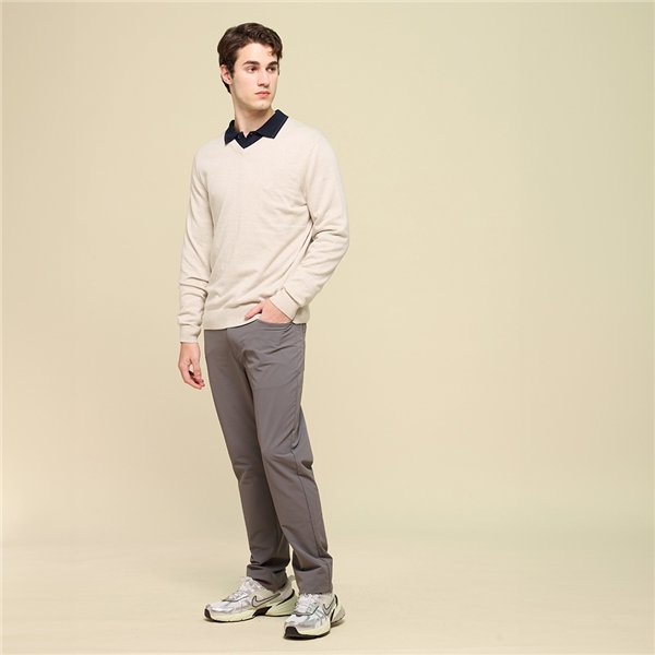 男裝 帆船刺繡棉質休閒長褲-灰色