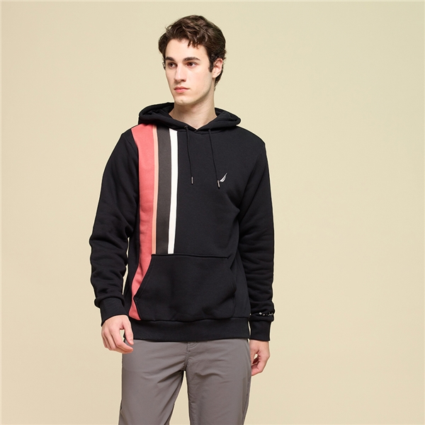 男裝 撞色設計棉感長袖連帽T恤-黑