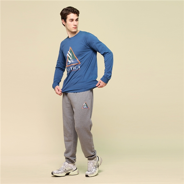 男裝 帆船刺繡棉質休閒長褲-灰色