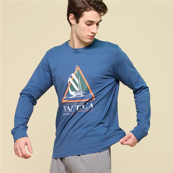男裝 航海精神幾何圖騰長袖T恤-藍色