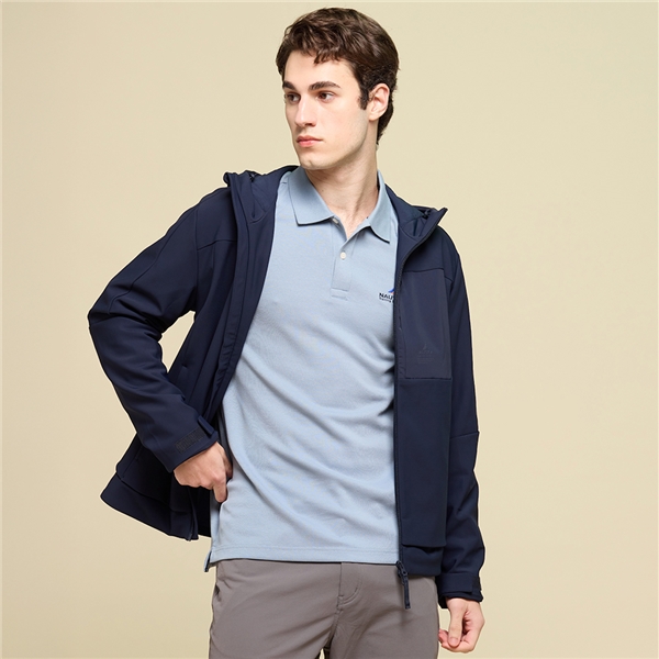 男裝 都會機能連帽保暖夾克外套-深藍色
