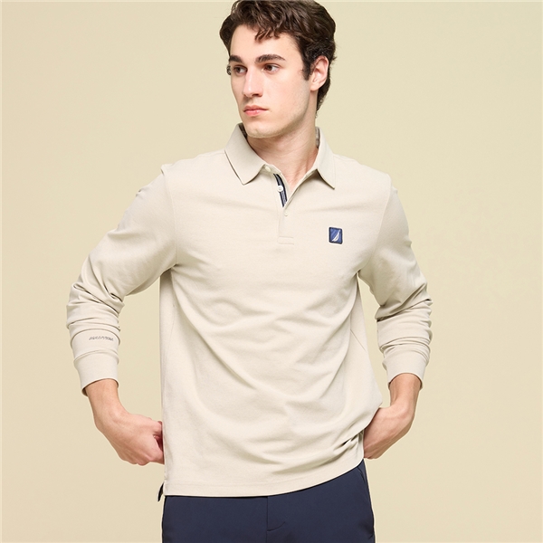 男裝 帆船徽章質感長袖POLO衫-杏色