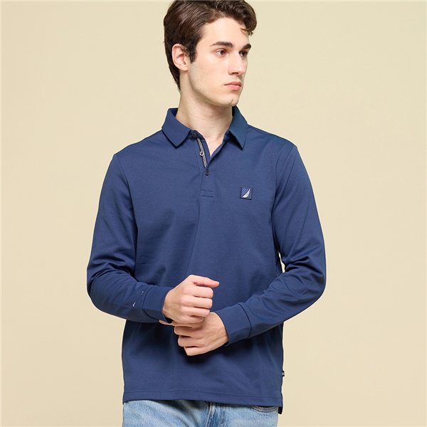 男裝 帆船徽章質感長袖POLO衫-深藍色