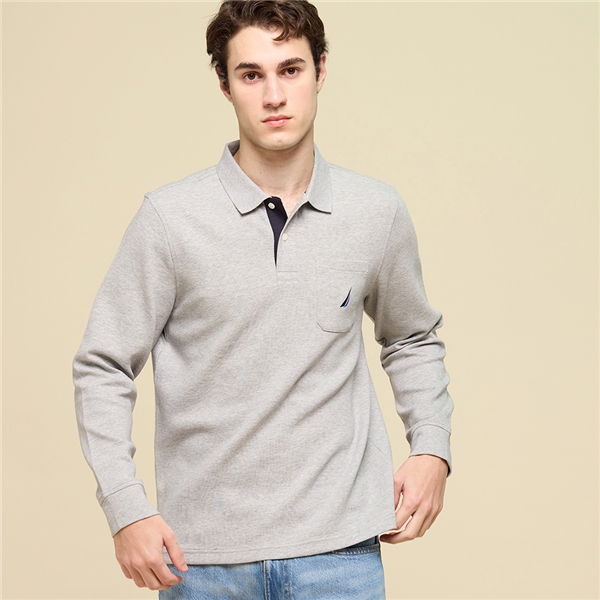 男裝 質感口袋長袖POLO衫-淺灰色