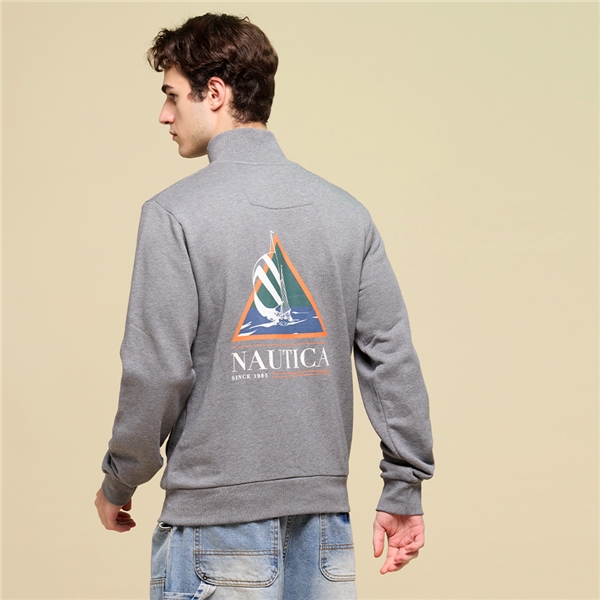 男裝 高領拉鍊帆船設計長袖上衣-灰色