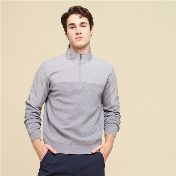 男裝 高領拉鍊帆船設計長袖上衣-灰色
