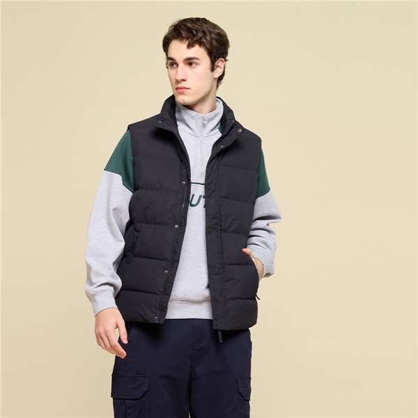 男裝 高領簡約百搭羽絨背心-深藍色