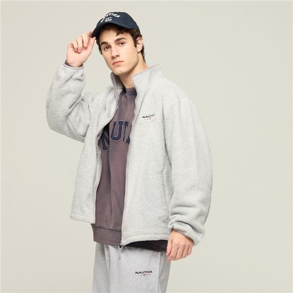 品牌旗幟搖粒絨外套-灰色