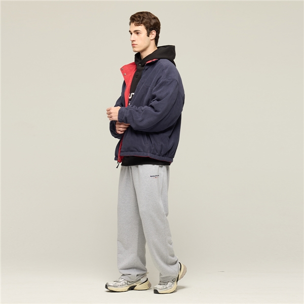 跳色抽繩寬鬆休閒長褲-灰色