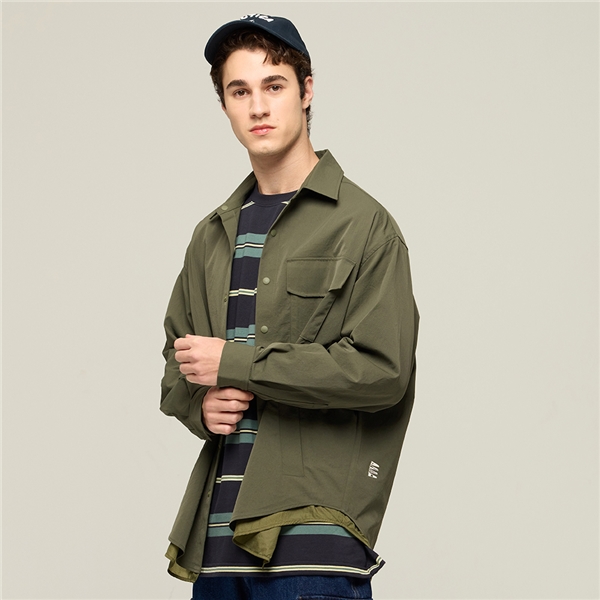 韓系簡約質感雙層長袖襯衫-綠色