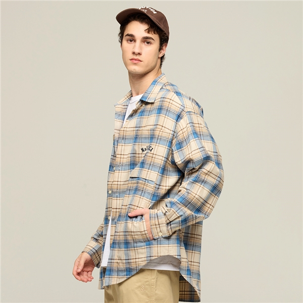 (Reebok聯名款)潮流棒球風圓領長袖襯衫-藍色