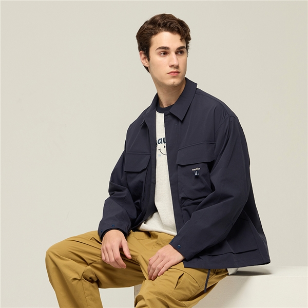 機能工裝多口袋襯衫外套-深藍色