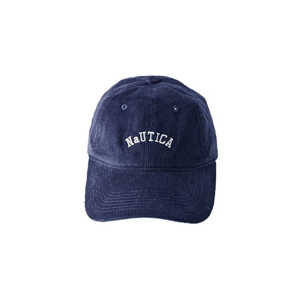 經典品牌刺繡燈芯絨棒球帽-深藍色