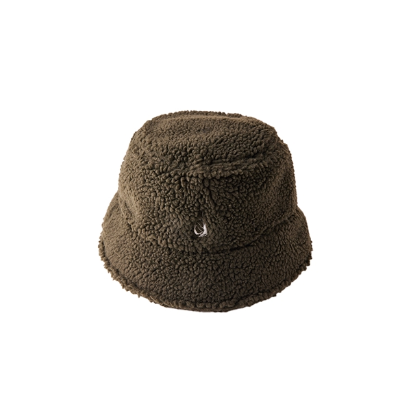 品牌LOGO旗幟刺繡搖粒絨漁夫帽-墨綠色