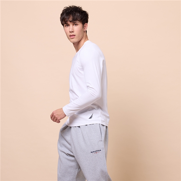 男裝 經典跳色LOGO刺繡抗皺內搭長袖涼感上衣-白色
