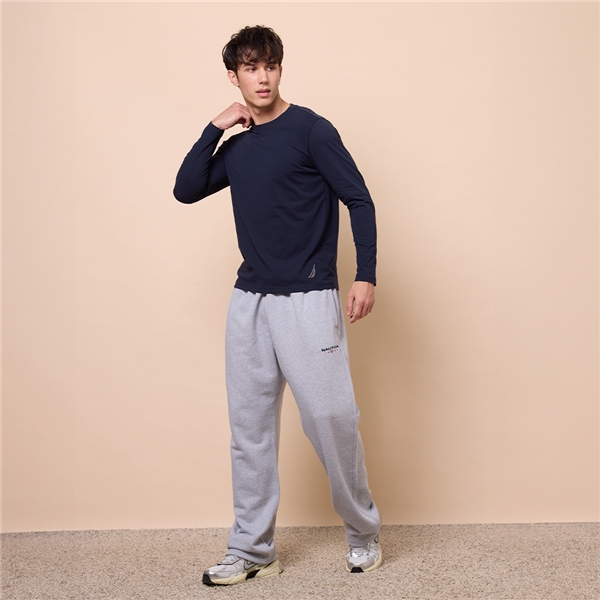男裝 經典跳色LOGO刺繡抗皺內搭長袖涼感上衣-深藍色