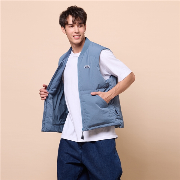男裝 美式復古機能鋪棉背心-灰藍色