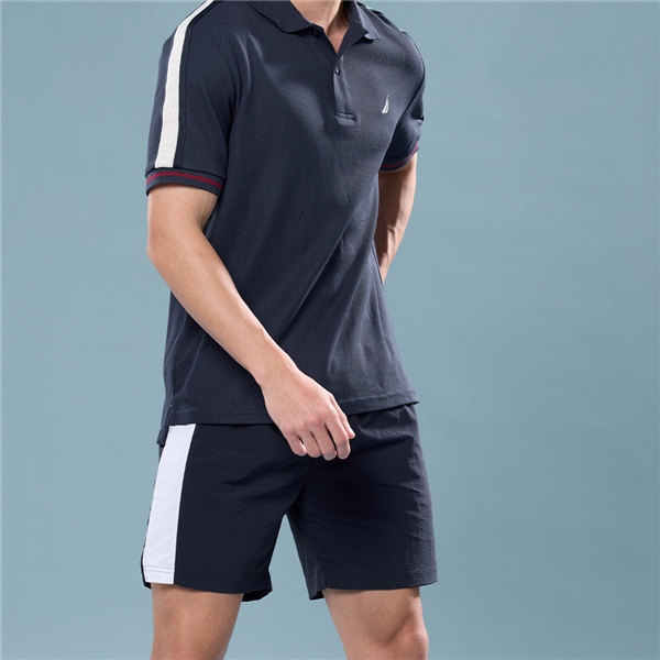 男裝 側邊拼接防潑水休閒短褲-藍色
