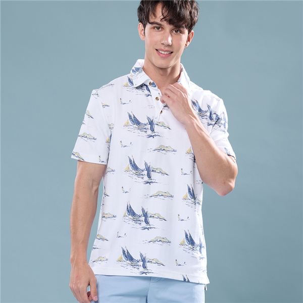 男裝 手繪風帆船印花襯衫-白色