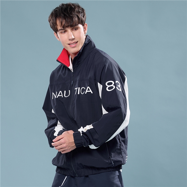 男裝 經典LOGO布繡立領防風夾克外套-藍色