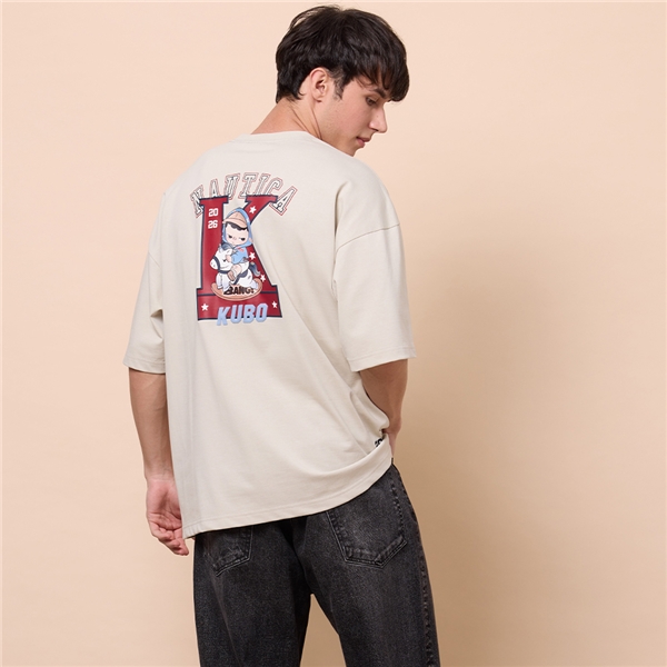 POP MART KUBO 俏皮造型聯名印花純棉短袖T恤-杏色