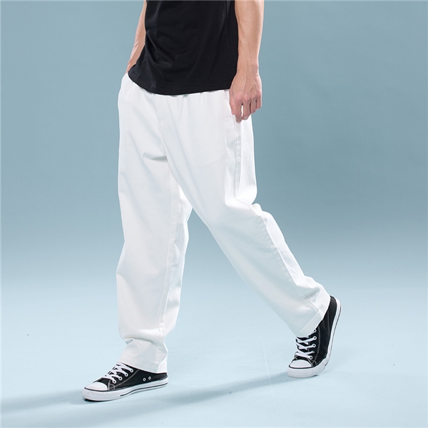 男裝 素面百搭彈性鬆緊褲頭長褲 -白色